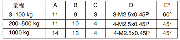 額定量程 (R.C.) | 3, 5kg | 10, 20, 30, 50, 100, 200, 300, 500, 1000kg |